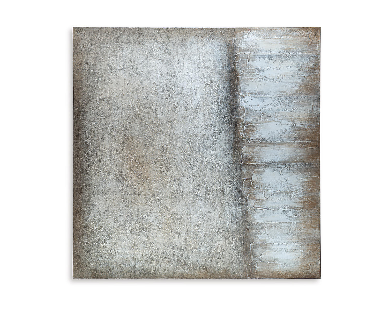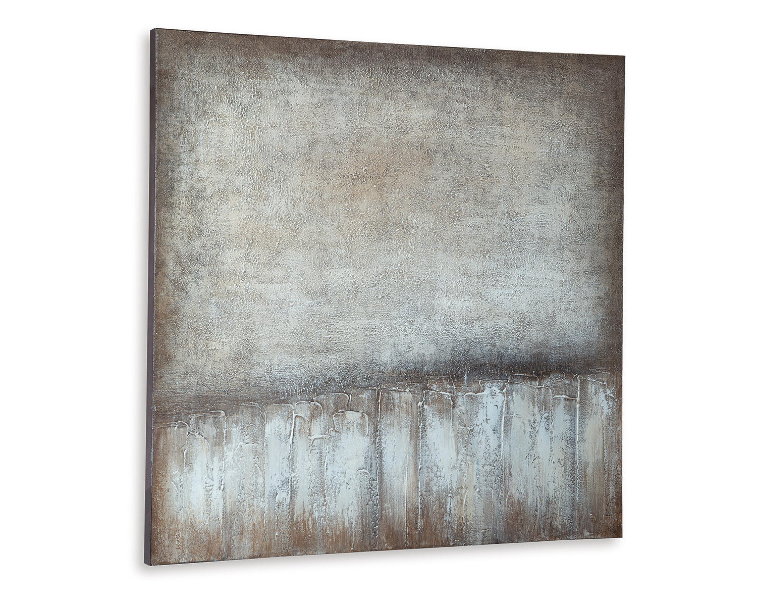 Abstract design in shades of brown, gray, tan and white. Gallery wrapped canvas. Hand painted. D-ring bracket for hanging. Hangs four ways. Due to the hand crafted nature of this product, some variations may occur.