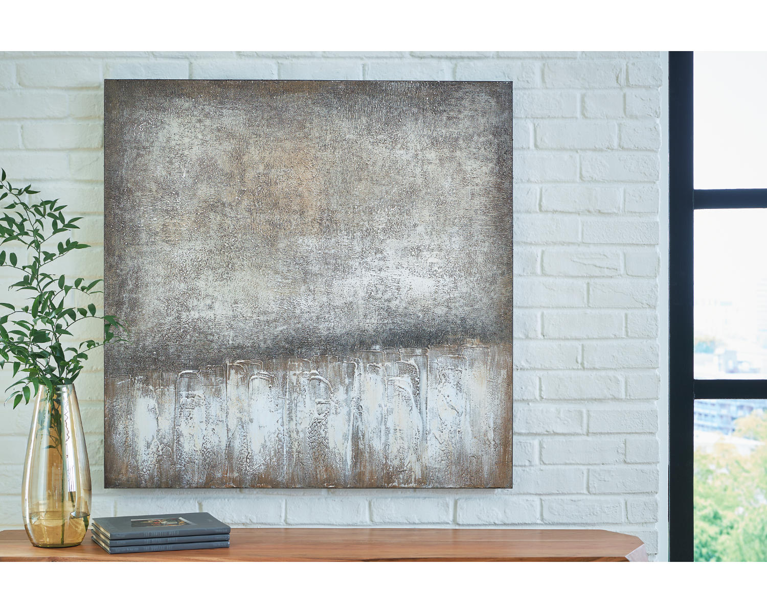 Simple in its sophistication, this wall art is a striking complement to contemporary spaces. Its richly refined neutral hues invite warmth and dimension to your wall decor. And with four ways to hang this piece, you can refresh its staging as you please.