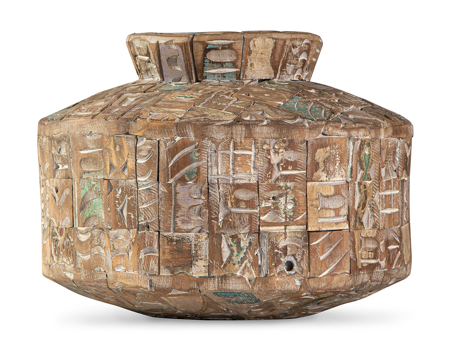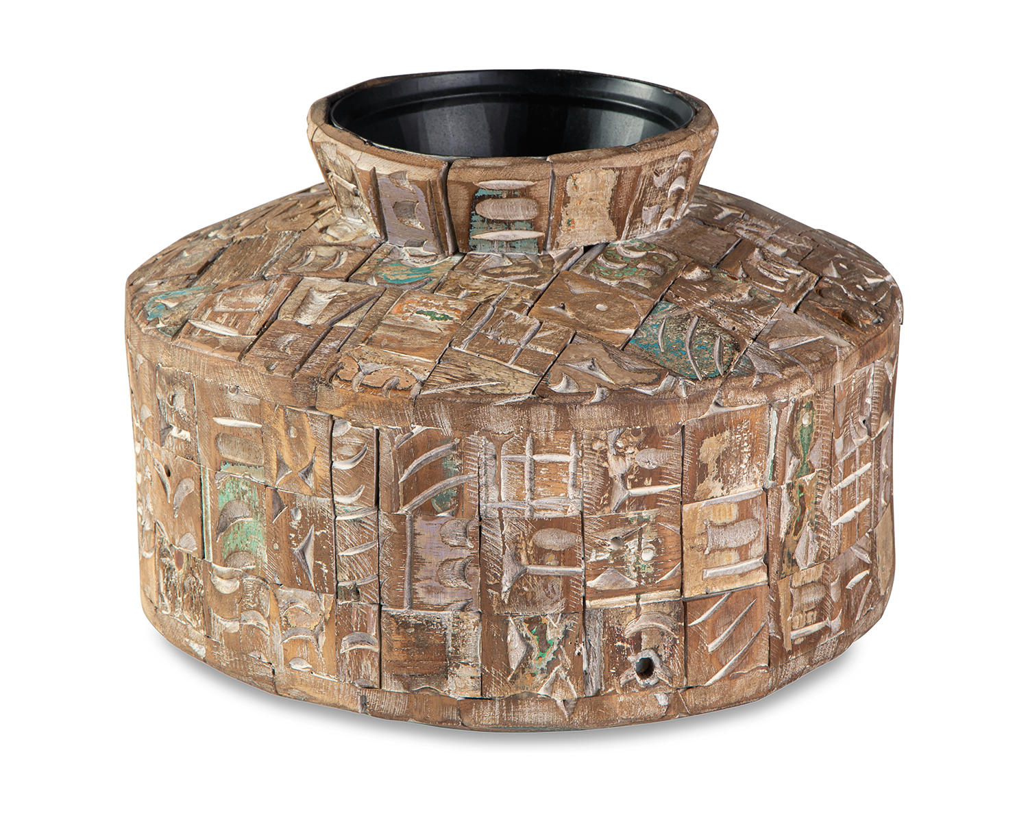 Bring a hint of natural beauty to your decor with this vase. Mesmerizing with its multi-hued finish, the piece's reclaimed wood construction has a well-loved look that graces your space with a weathered and warm appeal.