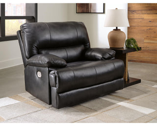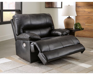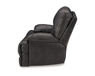 Striking form, meet contemporary function. This power recliner combines your ideal comfort features, like one-touch reclining and adjustable headrests, into one sophisticated package. With a design defined by the luxe look of black leather, this recliner pairs beautifully with your uncompromisingly posh aesthetic.