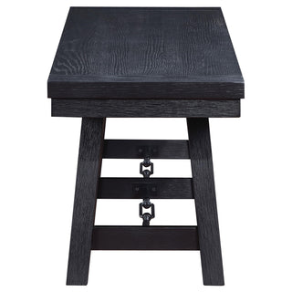Sheer rustic beauty and a bold finish set the pace in a dining bench you’ll come to love. This black wooden dining bench strikes a superb balance between farmhouse modern and low-key traditional motifs, providing comfortable seating in the process. Asian hardwood and wood products add a look and feel of solid workmanship in a bench reflecting a traditional and industrial sawhorse design with classic industrial metal leg accents. A bold black finish is just edgy enough to make a statement in your casual kitchen or dining room. Choose this charming bench for dining or as a spare seating unit that can double as a display table between uses.