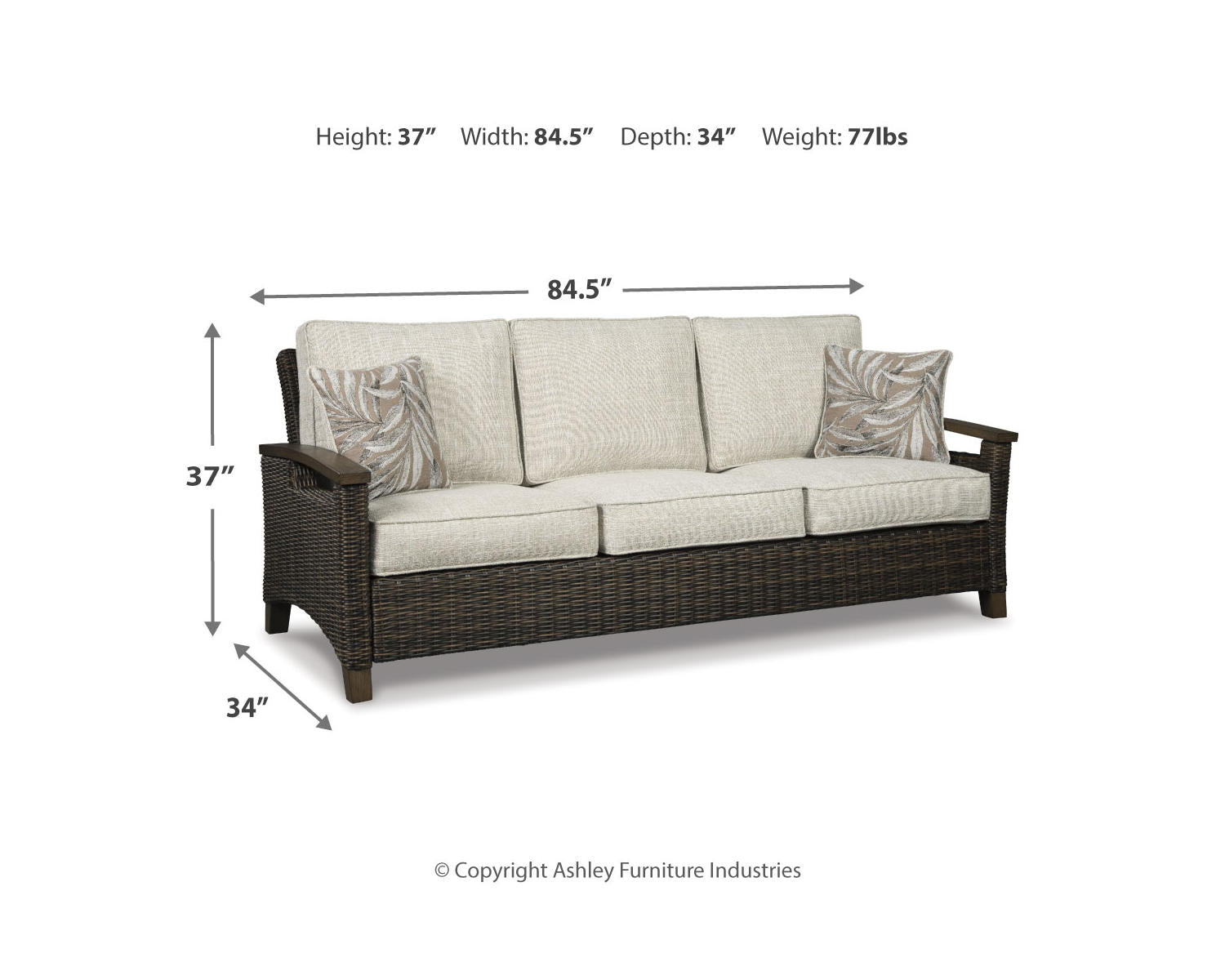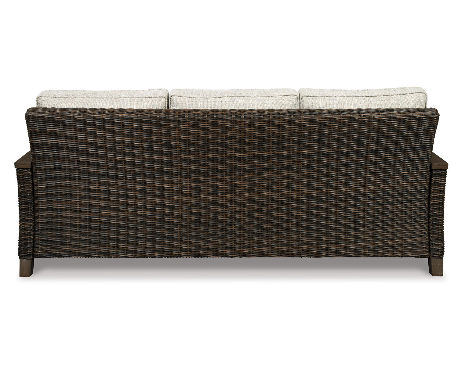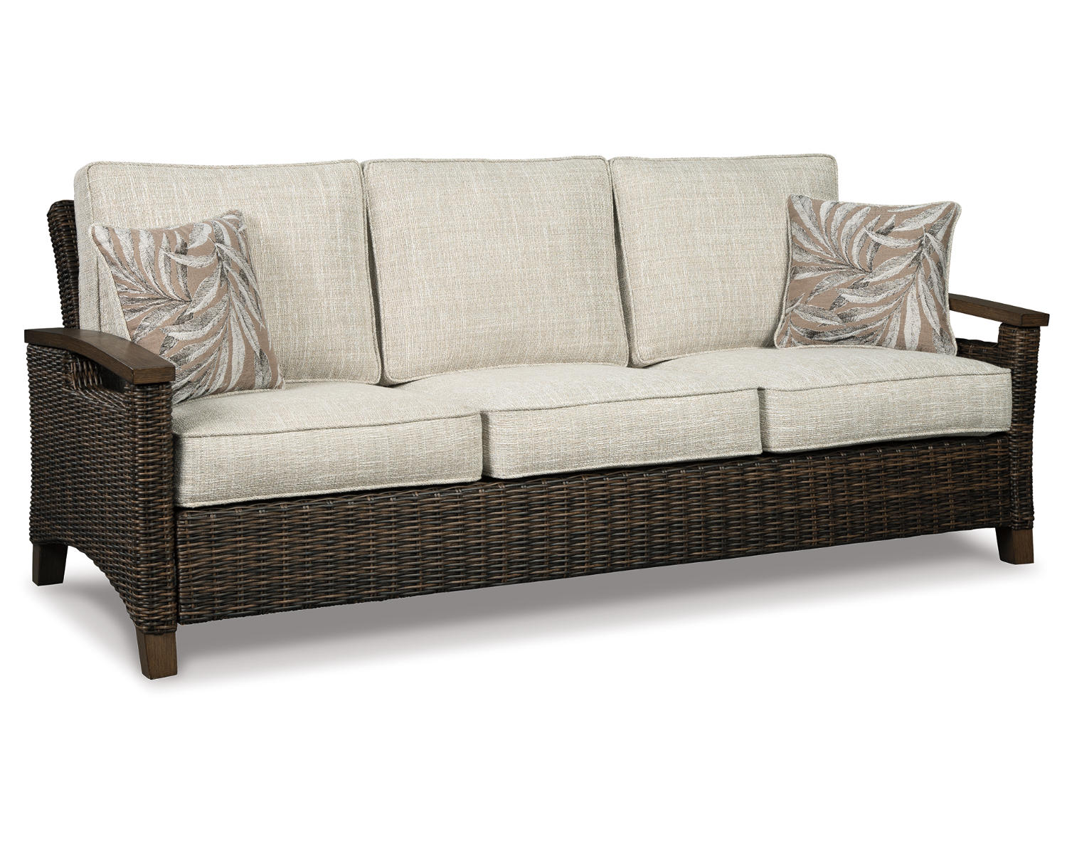 Pretty enough for trendy interiors, yet durable enough to weather the elements, the Paradise Trail outdoor sofa rises to the challenge beautifully. Handwoven resin wicker over rust-proof aluminum merges high style with low maintenance. Rest assured, though the exposed armrests and feet look remarkably like wood, their sturdy aluminum construction is perfectly suited for alfresco living. Plush seat cushions and throw pillows wrapped in high-performing Nuvella® fabric aim to please.