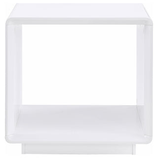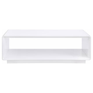 This coffee table set embodies modern minimalism with a sleek white high gloss finish over durable engineered wood. The cocktail table features a low-profile design with an open shelf for storage, while the side table maintains visual harmony with a compact form perfect for versatile placement. Whether serving as an occasional table set or everyday centerpiece, its clean aesthetic enhances contemporary interiors with functional elegance.
