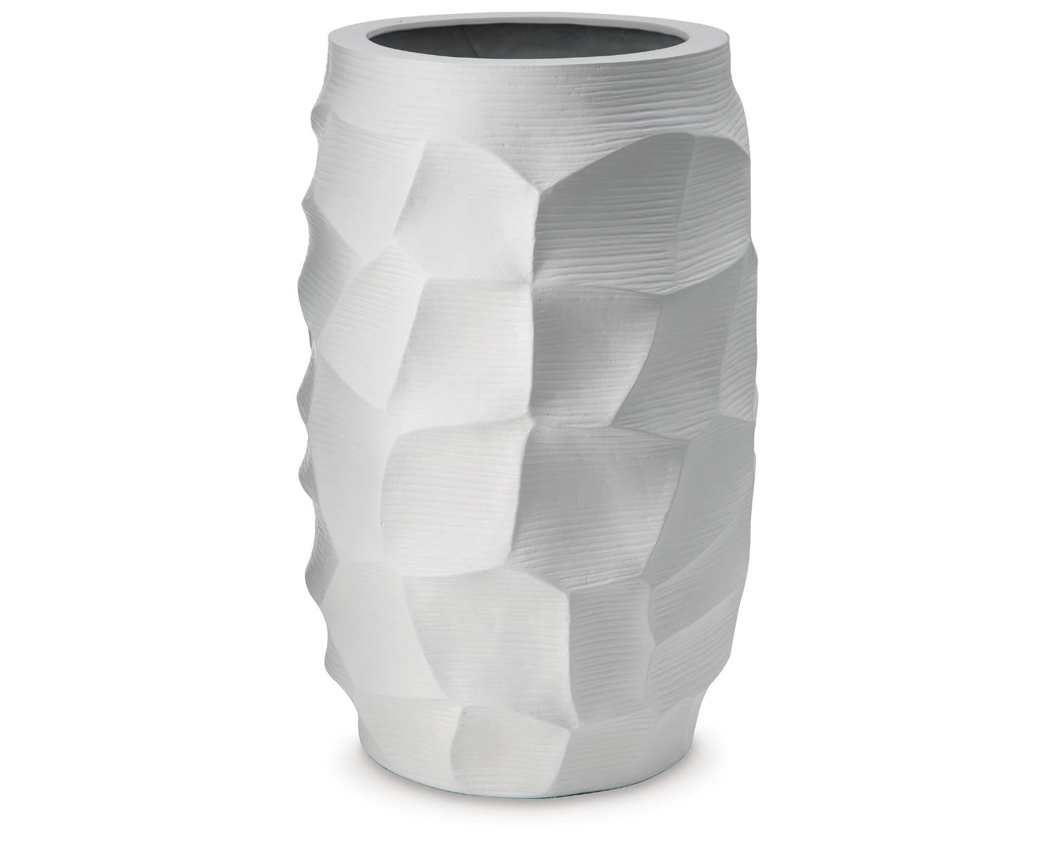 A contemporary take on texture. This vase’s sculptural details are made all the more beautiful with a crisp white finish. It’s stunning when displayed on its own, making an impression on accent tables and bookshelves. Want to change your decor with the seasons? Use it to display your favorite faux greenery or other decorative fillers.