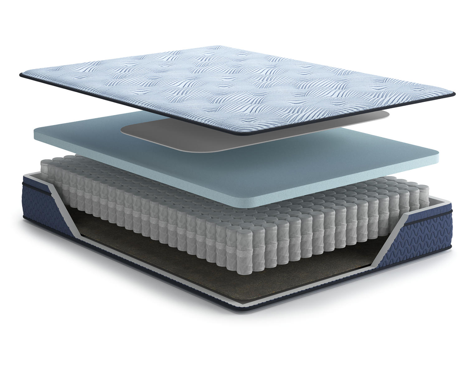 Pure sleep perfection. With this hybrid king mattress, restorative rest is easier than ever. You can snooze soundly on its layers of comforting quilt foam and luxury loft fiber. A wrapped coil unit and supple base foam provide the support you need while reducing motion transfer. And the mattress is topped with a Hyper Cool cover, helping to keep your temperature regulated through the night.