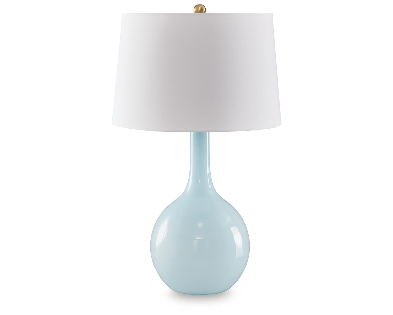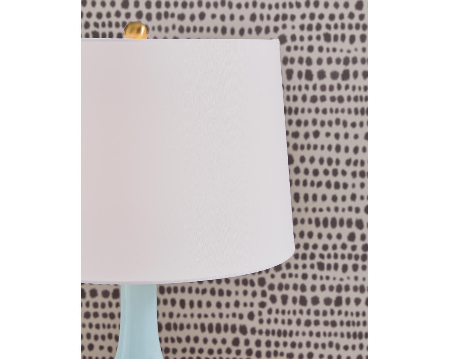 More than mere lighting, this spectacular table lamp illuminates your good taste. Its elegant silhouette, crafted from aqua blue glass, is contemporary artistry at its finest. No two lamps will be quite alike.