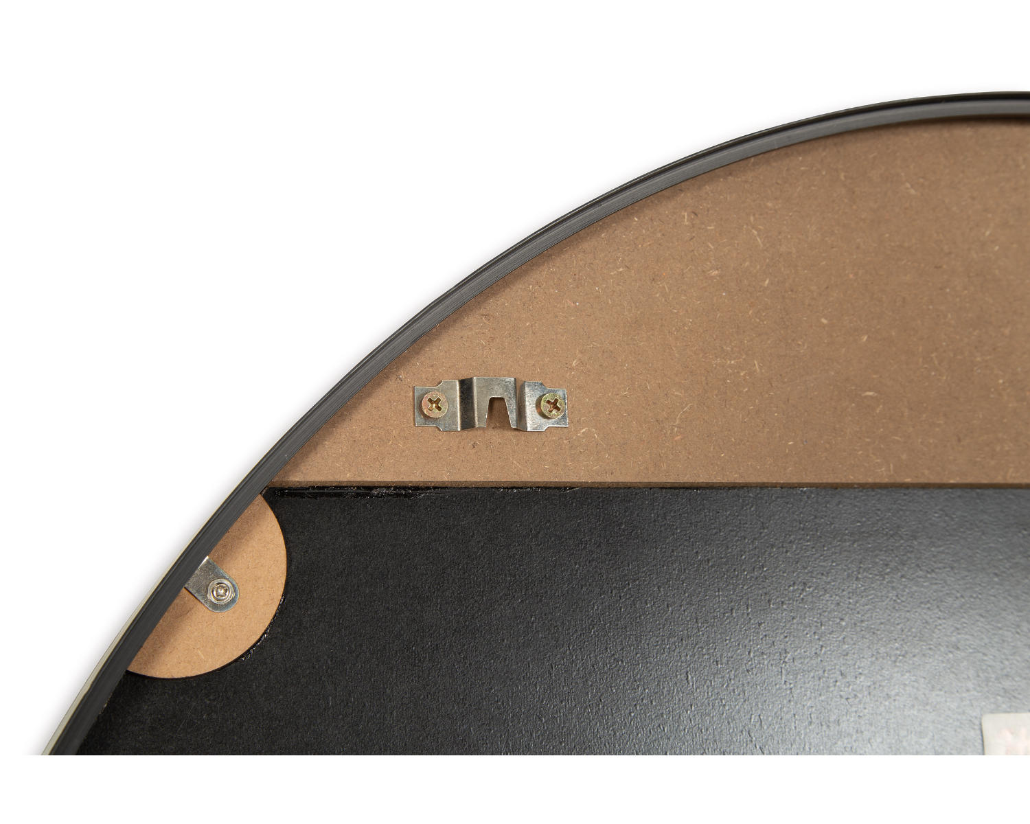 Black finished metal floor mirror. Sawtooth bracket for hanging. Vertical hanging only.