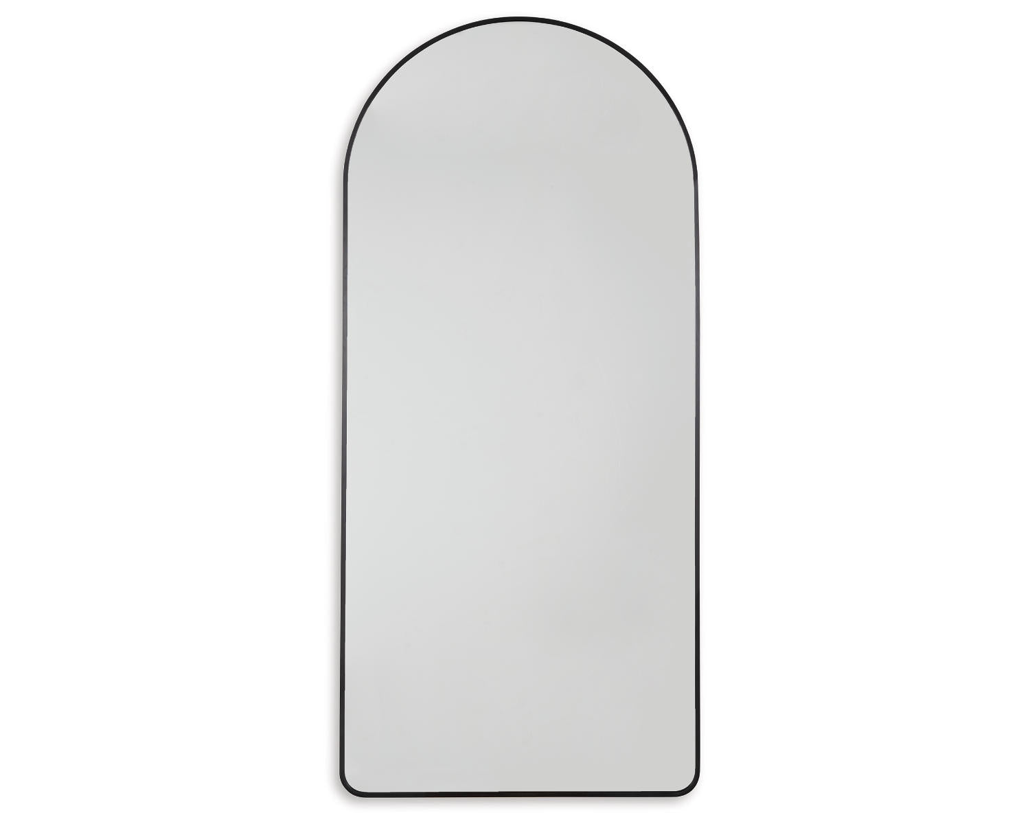 Beauty reflects in contemporary style with this floor mirror. Its black-finished metal creates a lovely curved frame. Standing almost six feet high, this mirror makes a case for statement style.