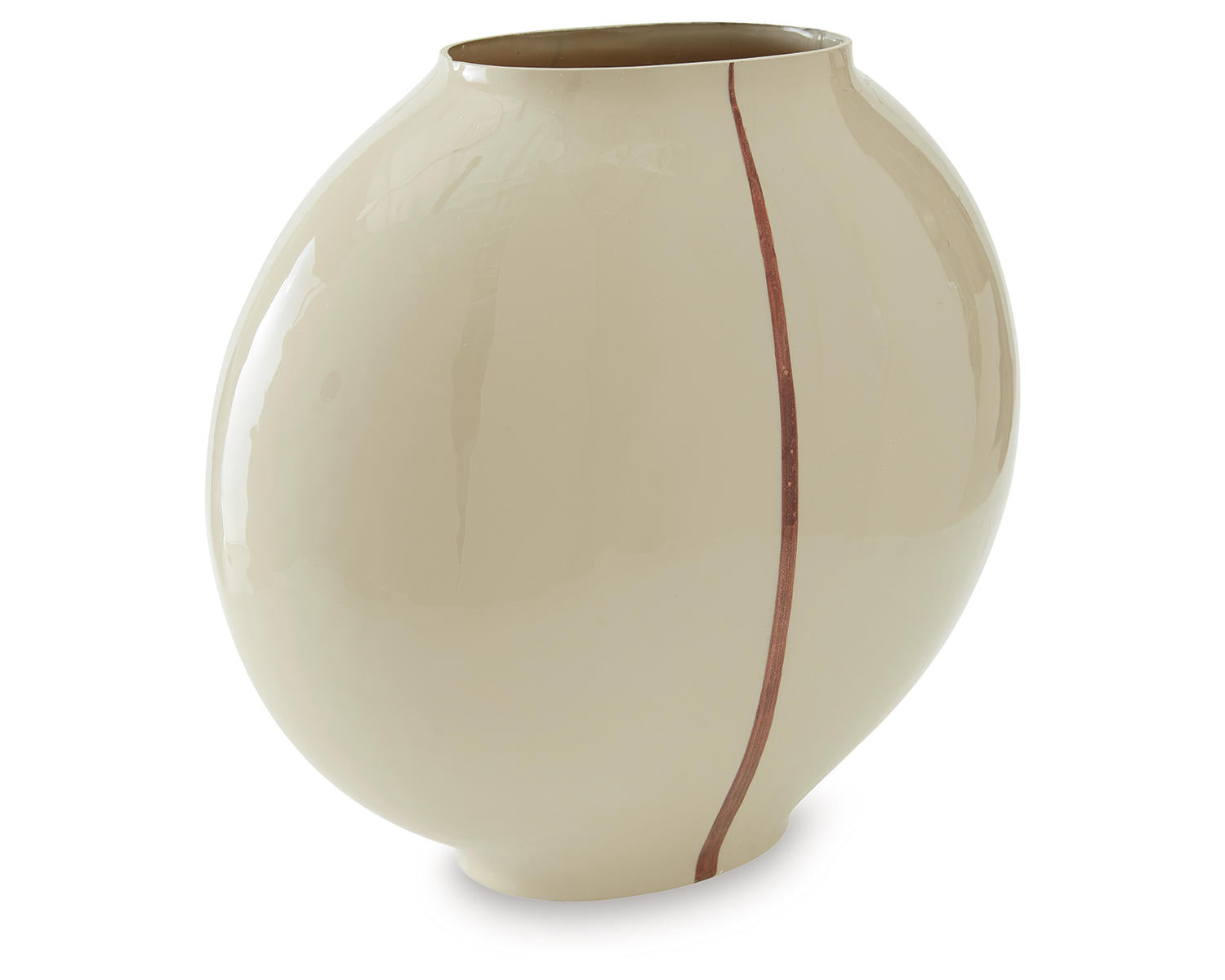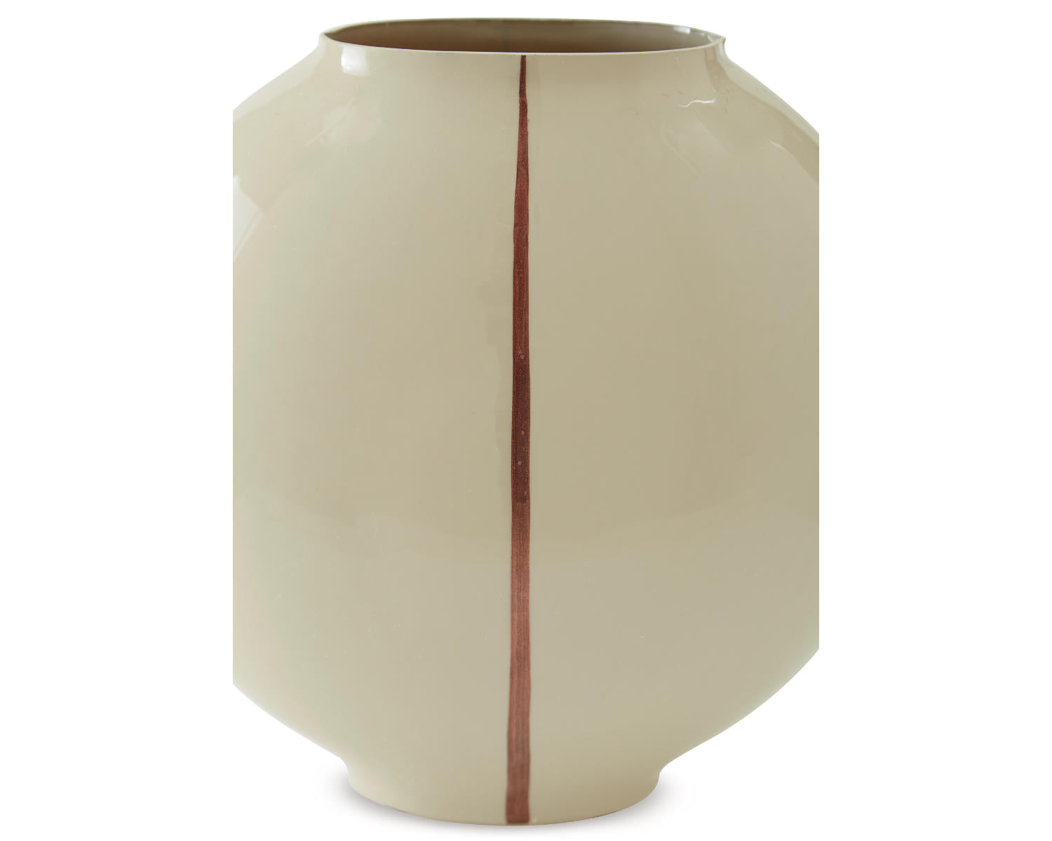Vase. Cream finished enameled glass. Hand painted metallic copper finished line. Due to the finishing process of this product, some variations may occur.