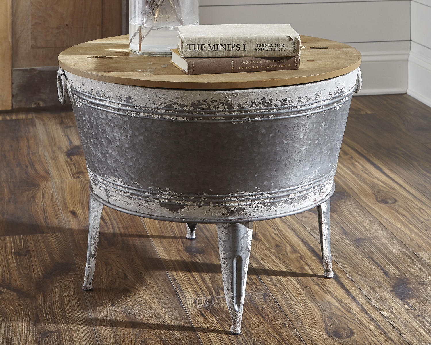 The classic galvanized metal tub—with a new sense of purpose. Sporting a split lift wood top that allows for handy storage, this round coffee table is sure to add a uniquely charming touch to your modern farmhouse.