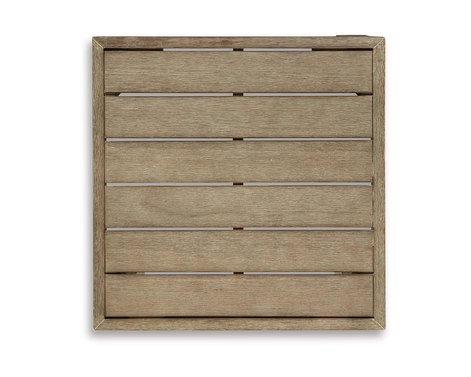 Beautifully on point, this outdoor end table is the natural choice for modern minimalists who know that less is more. Quality crafted of eucalyptus wood, this ultra clean-lined outdoor table is enriched with a multi-step embossed finish that both brings out the wood’s natural grain and protects it from the elements for seasons of fun in the sun. Incorporating form and function, the plank top naturally sheds rainwater.