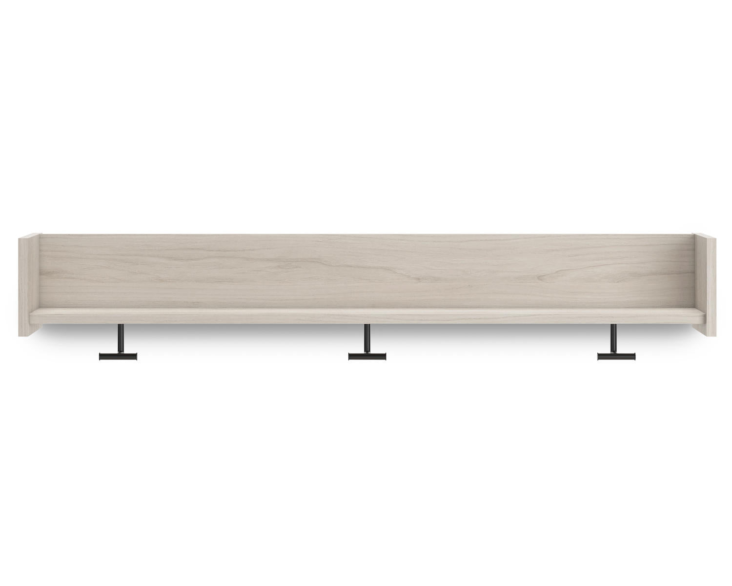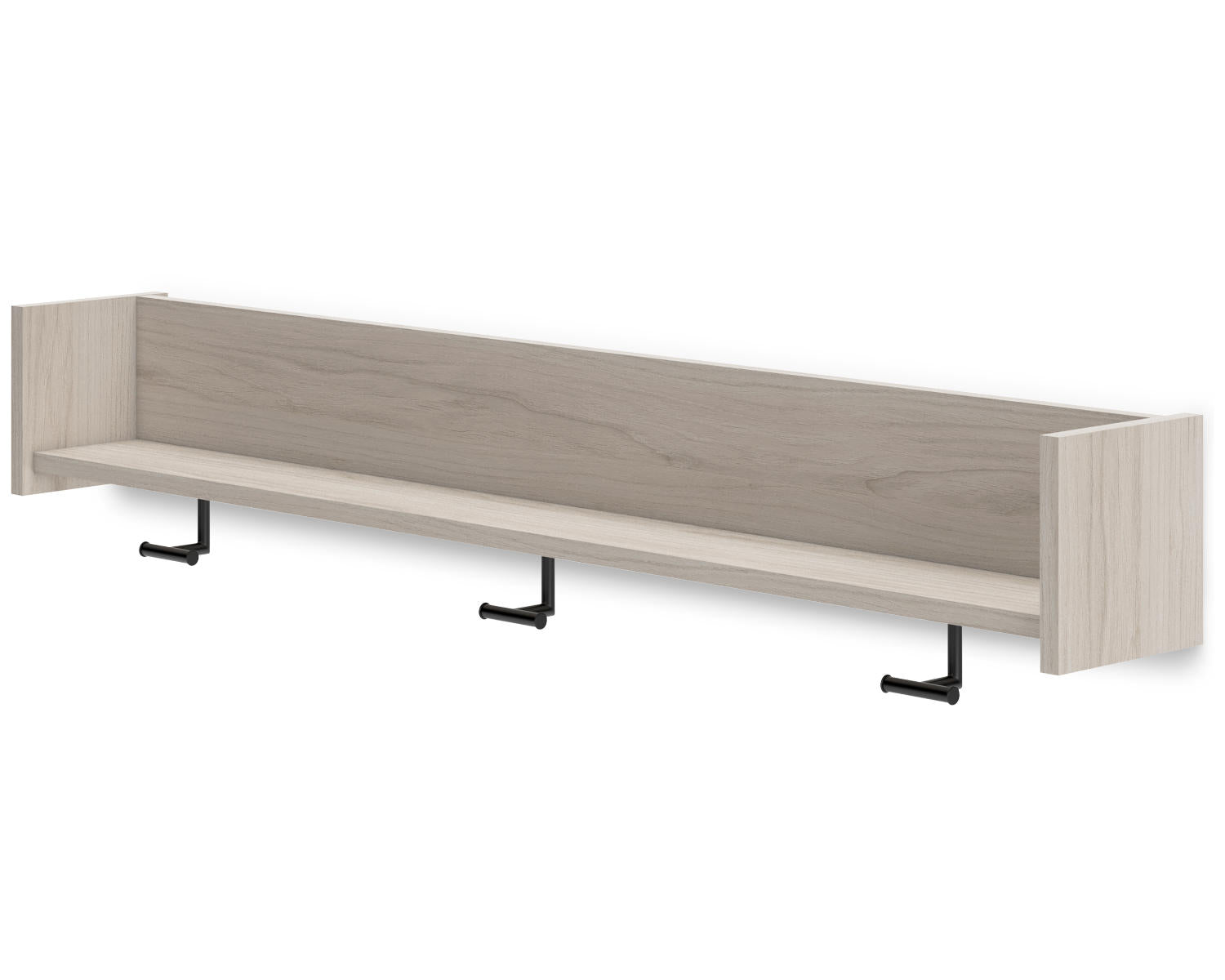 The sleek, minimalist look of this wall-mounted coat rack is fashionably contemporary and easy to integrate in a variety of living spaces. Three sturdy hooks and a spacious shelf are your new go-to spot for hats and scarves or displays. Whether by the front door or back entry, this coat rack keeps all-weather essentials well within reach.