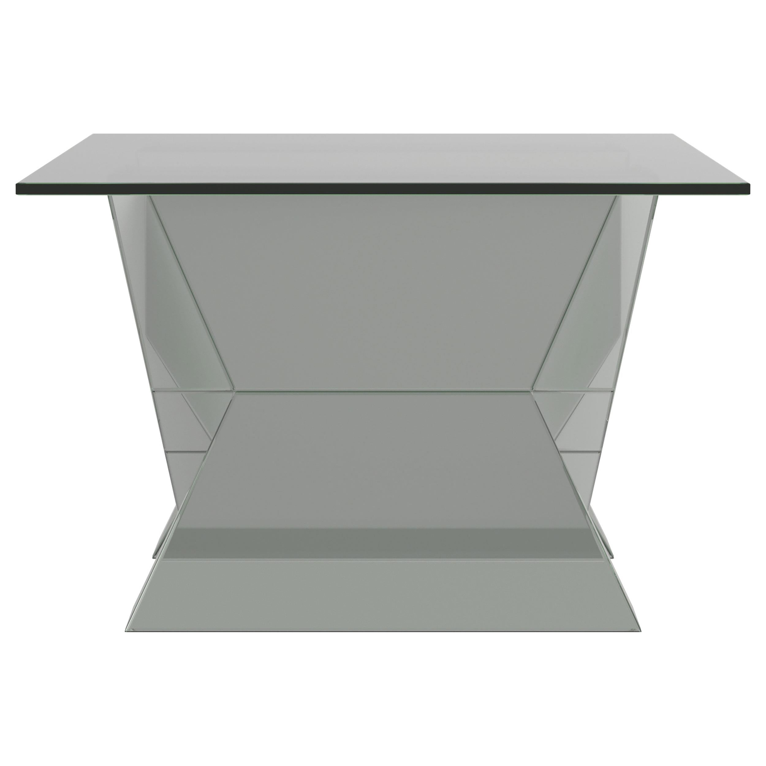 Taffeta Glass Top Mirrored Acrylic Coffee Table Silver
