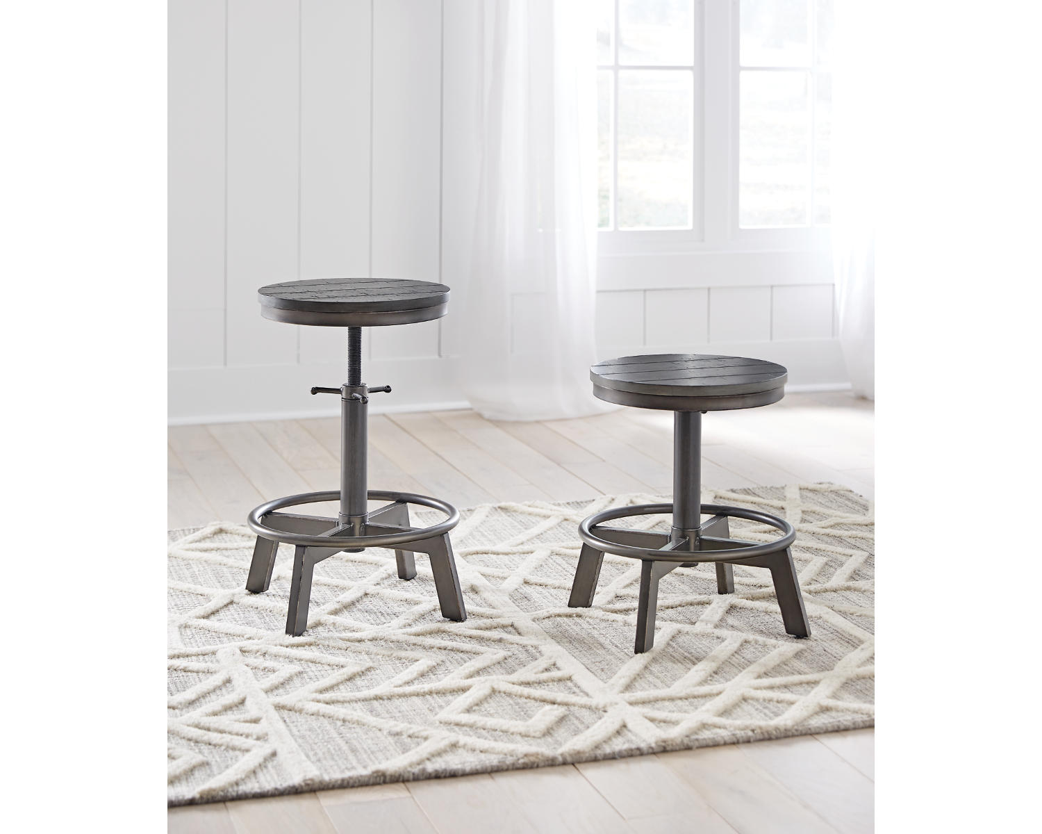 Make your home the hub for cool vibes with this stool. Its two-tone finish scheme of weathered gray and aged gunmetal is full of urban industrial swagger. The stool's adjustable height is accommodating for you and your guests. Add it behind your sofa with a long counter table for a dapper eating or working space.