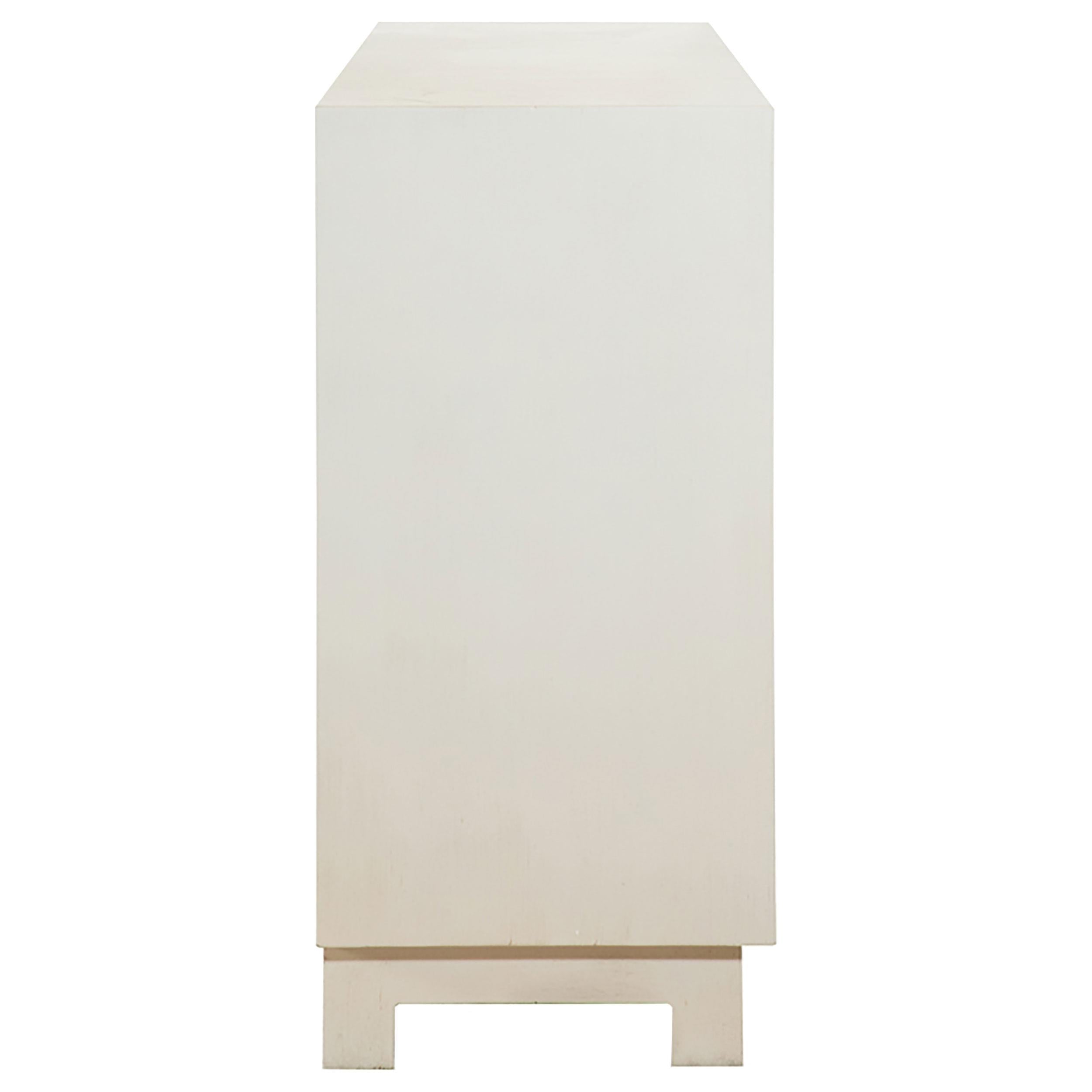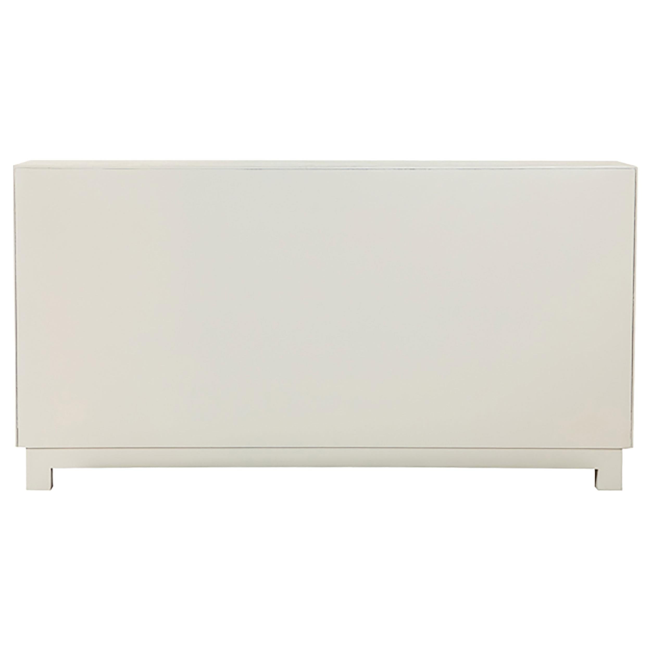 Elevate your space with bold Art Deco flair using this striking accent cabinet. Featuring a Greek key pattern across its four doors, this piece blends timeless design with modern charm. A tri-tone palette of white, gold, and silver adds sophistication, while three interior shelves provide practical storage. Crafted from wood and MDF, this cabinet is perfect for entryways, living rooms, or dining areas.