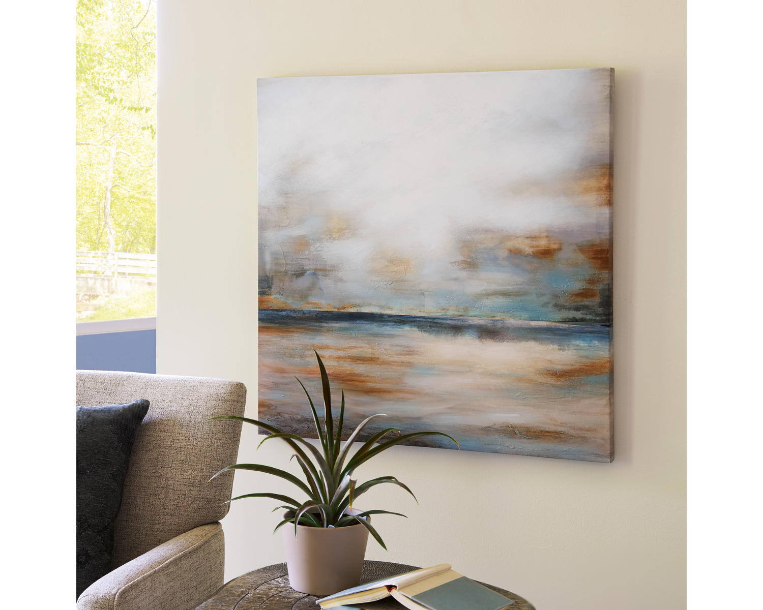 Keep your head in the clouds. This wall art is a dreamy addition to your modern decor. It’s a simply stunning abstract take on landscape paintings, gracing your space with its bright and airy design.