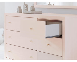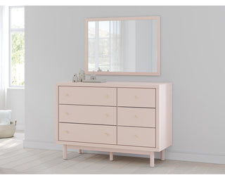 Pretty in pink. This dresser with mirror keeps the spirit of your home’s modern aesthetic while suiting all your young one’s needs. Its subtle blush finish brings a playful, charming vibe to organizing clothes and other essentials. Made for her and styled for you, it’s a lovely addition to a beautifully chic child’s bedroom.